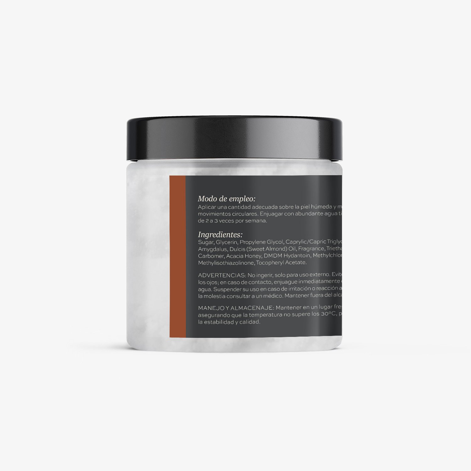 Exfoliante corporal que trabaja suavemente dejando la piel brillante y saciada. Formulada con ingredientes dulces como los exfoliantes cristales de azúcar, la nutritiva Miel de Acacia, Aceite de Almendra, fragancia de Maderas Orientales y la rica manteca de cacao, que son tenaces frente a la piel seca.
